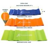 Whether an expert in the gym, a beginner to working out, a fan of Pilates, or rehabilitating after an injury, ProsourceFit Therapy Flat Resistance Bands are one of the best ways to safely stretch and strengthen muscles. Ideal for upper body, lower body and core strengthening, these durable elastic bands are color-coded to indicate 3 resistance levels: light, medium and heavy. The variety keeps muscles challenged in new ways, helps progress through physical therapy exercises and gently assists with stretching. They allow you to work from different angles to involve more muscle groups, with a greater range of motion than with traditional weight machine exercises. The flat, lightweight design is extremely versatile for toning as well as Pilates exercises and yoga poses. Loop around a sturdy object or tie at the ends for endless possibilities to improve balance, strength and coordination. They are also perfect for all types of physical therapy including rehabilitating torn rotator cuffs, bad elbows and damaged knees. Use to stretch hamstrings, shoulders, quadriceps and more. High-quality latex rubber guarantees high resilience for ongoing use. A door anchor and convenient carrying bag enable you to work out from home or while traveling, so you can stay fit wherever life may take you. Train like a Pro, train with ProsourceFit!